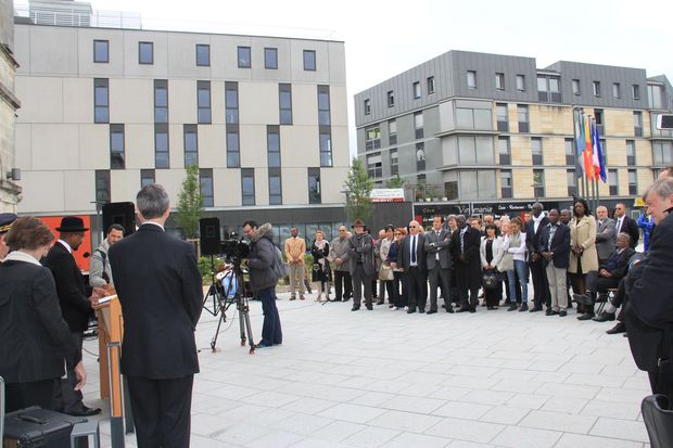 C’est donc sur le parvis de la mairie de Cenon qu’ Alain David, Maire et Karfa Diallo Président du mémorial de la traite des Noirs ont accueilli les participants à la cérémonie de cette 9ème commémoration sur le parvis de l’hôtel de ville.