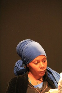 PATRICIA GRANGE- hiératique vestale d’une cérémonie de poésie frontale. Seule, debout, face à nous, elle expire ses mots, inspire ses silences. Jouant d’instruments ancestraux, elle ponctue la progression du poème avec des sons qui parlent d’autres langues. « Ventres, sons creux » est une affirmation pleine de promesses, de sagesse, de jeunesse et de courage aussi. Une belle affirmation d’une féminité pleinement habitée. Grand poème, accompagné dans sa version imprimée, par les dessins de Maya Mihindou.